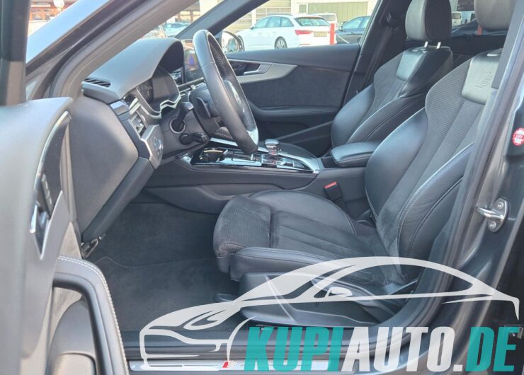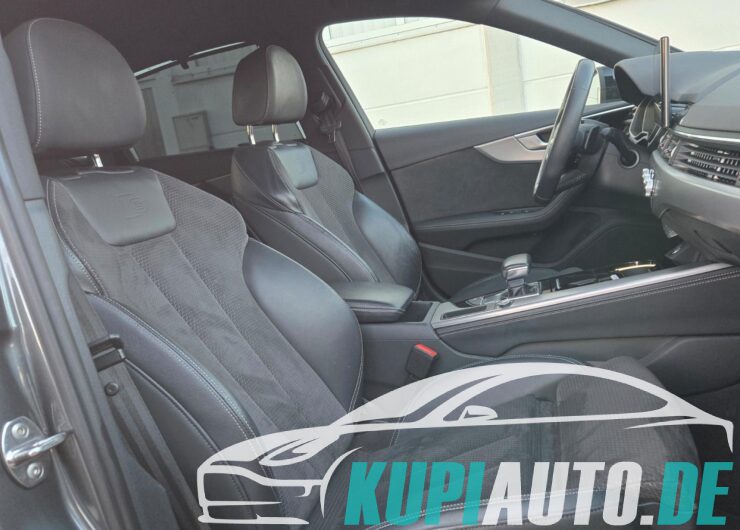 Audi Drive Select, Außenspiegel schwarz, Business-Paket, Dachhimmel Stoff, schwarz, Einparkhilfe vorn und hinten, akustisch und optisch mit selektiver Anzeige (APS Plus), Fahrassistenz-System: Verkehrszeichenerkennung, Harnstofftank (SCR): 24 Ltr., Innenausstattung: Dekoreinlagen Akzentteile in der Armaturentafel in Glasoptik schwarz, Kombiinstrument digital (virtual cockpit plus), Kraftstofftank: 54 Ltr., Lenkrad (Sport/Leder – 3-Speichen, unten abgeflacht) mit Multifunktion und Schaltfunktion, LM-Felgen, Optik-Paket schwarz, Perleffekt-Lackierung, Rückfahrkamera, Rücksitzlehne geteilt/klappbar (40:20:40), Sitzbezug / Polsterung: Alcantara Frequenz / Leder, Sound-System DSP / Audi Sound-System, Sportsitze vorn
